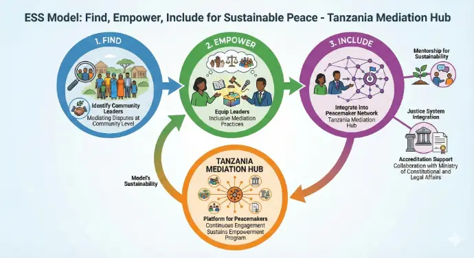 As peacemakers, we are committed to making inclusive and accessible mediation a standard practice in the justice system in and outside Tanzania, contributing to rebuilding public trust in the justice system through fair, efficient, transparent, and accessible processes for all.