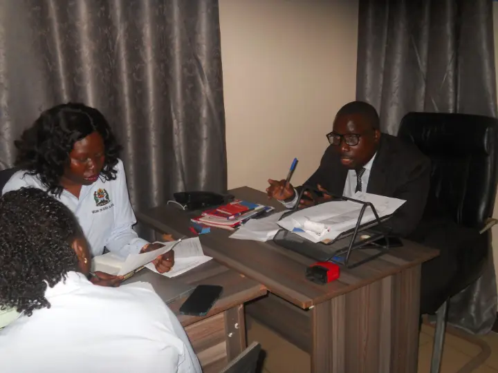Ms. Aveline Ombock, Nuru Mwambemba, and Erick Mukiza in discussions